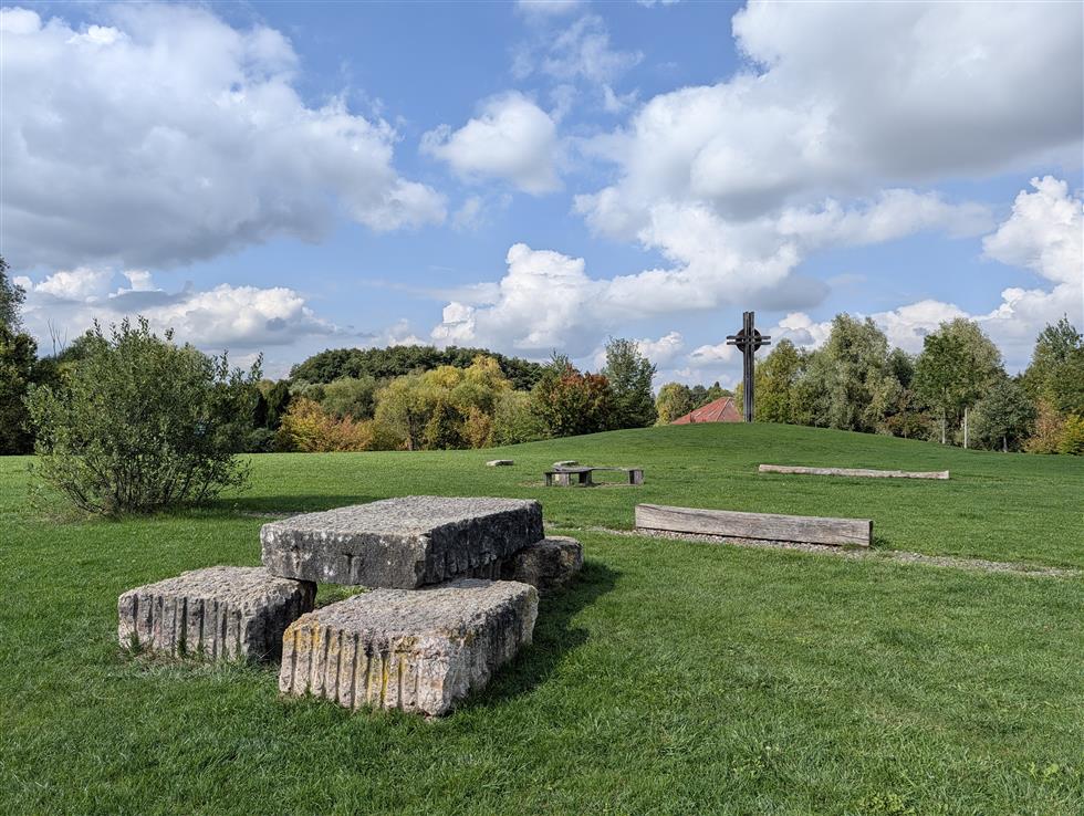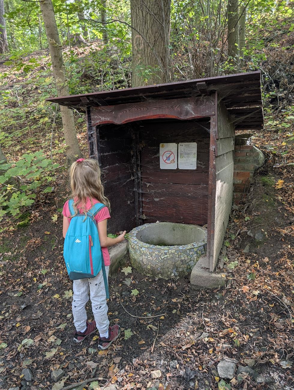 Pokračujte směrem k zámku Dolní Břežany, hřbitovu Dolní Břežany. Za hřbitovem se dostáváte do terénu kolem studánky Jaromířka. Zde je to s kočárkem obtížnější. Je tu úzká pěšina a několik příkrých hupů. Středověké hradiště Dolní Břežany (Hradišťátko) lze pěšinou obejít dokola (bez kočárku). Lze vidět pozůstatky opevnění - val.