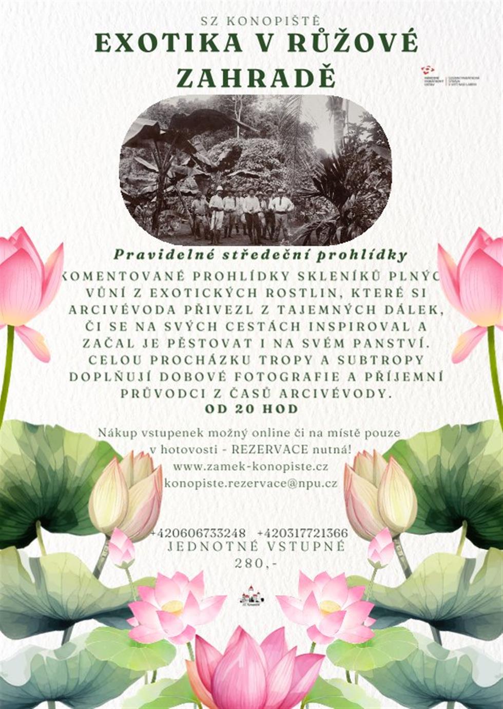 - Exotika v růžové zahradě – pravidelné středeční prohlídky od 20 hodin – komentované prohlídky skleníků plných vůní z exotických rostlin, které si arcivévoda přivezl z tajemných dálek či se na svých cestách inspiroval a začal je pěstovat i na svém panství. Celou procházku tropy a subtropy doplňují dobové fotografie a příjemní průvodci z časů arcivévody.