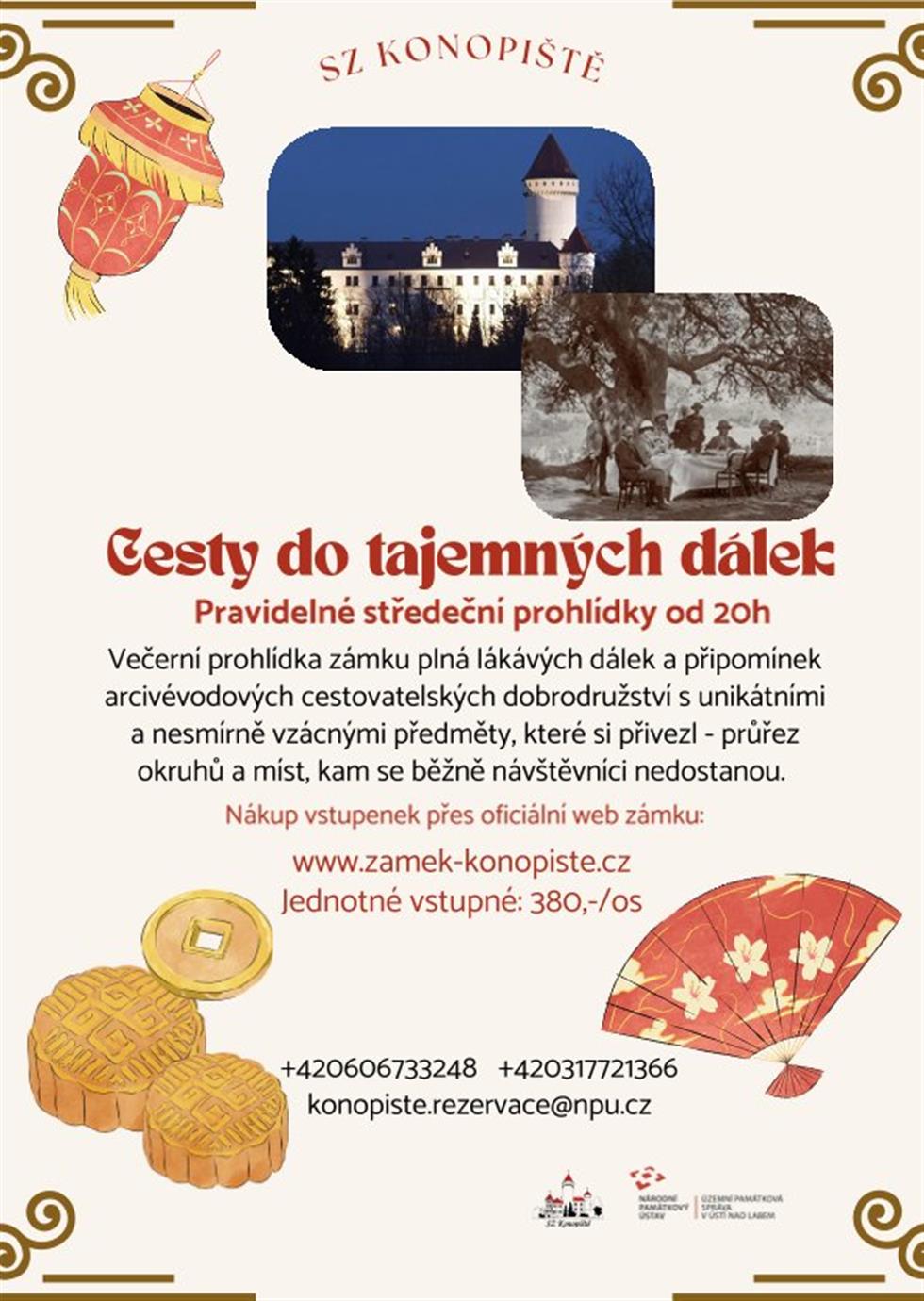 - Cesty do tajemných dále – pravidelné středeční prohlídky od 20 hodin – večerní prohlídka zámku plná lákavých dálek a připomínek arcivévodových cestovatelských dobrodružství s unikátními a nesmírně vzácnými předměty, které si přivezl – průřez okruhů a míst, kam se běžně návštěvníci nedostanou. Nákup vstupenek přes oficiální web zámku. Jednotné vstupné: 380 Kč/osoba.