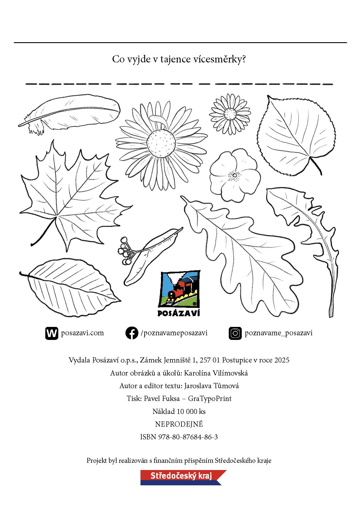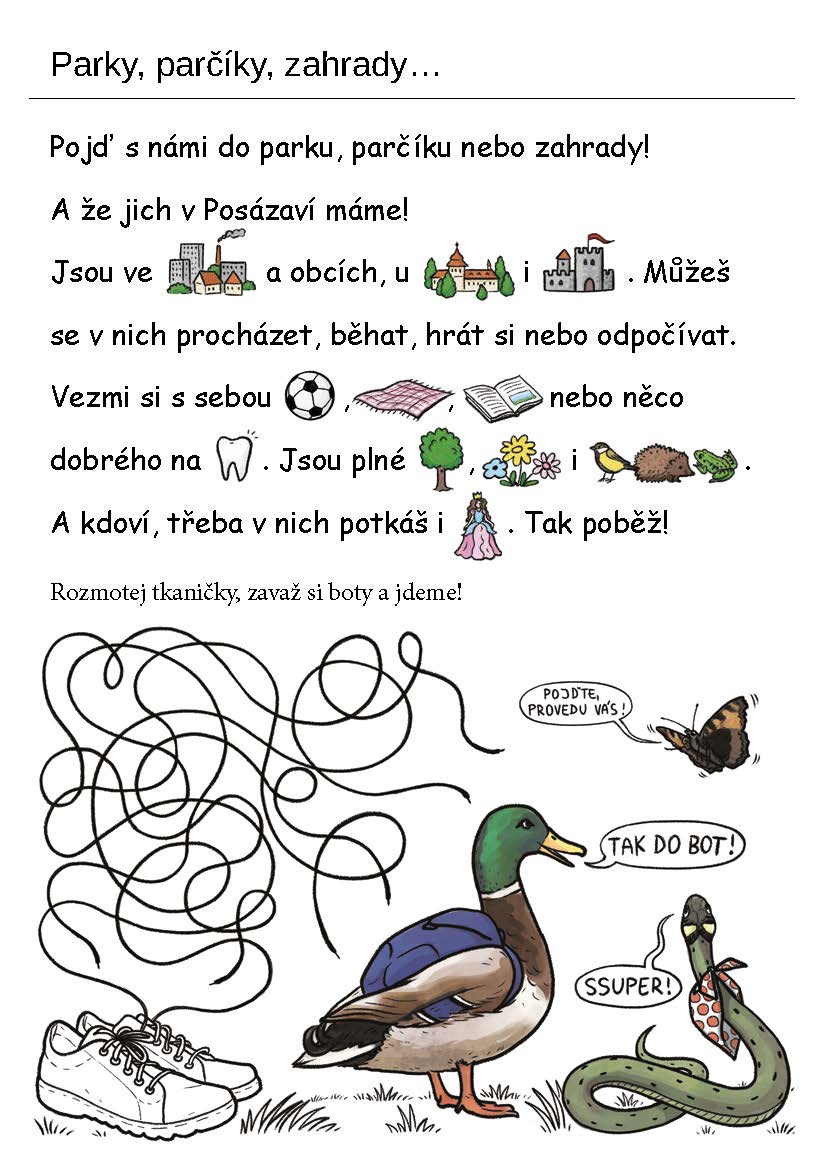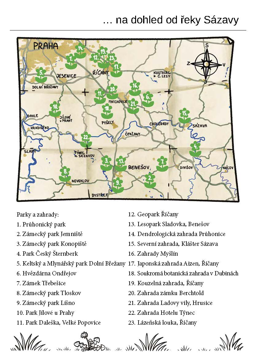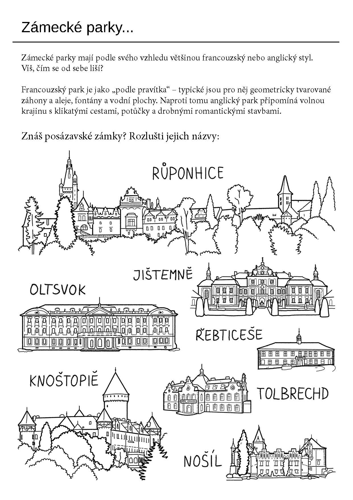 Vydejte se s námi prozkoumat parky, parčíky a zahrady v Posázaví. Najdete v nich upravené květinové záhony a cestičky vysypané štěrkem i tajuplná zákoutí, zurčící potůčky a křivolaké stezky. V Posázaví najdeš od všeho trochu. Stačí si sednout ke stolu, vzít si pastelky, zalistovat tímto sešitem a vydat se na pomyslnou výpravu. Tak šťastné putování!