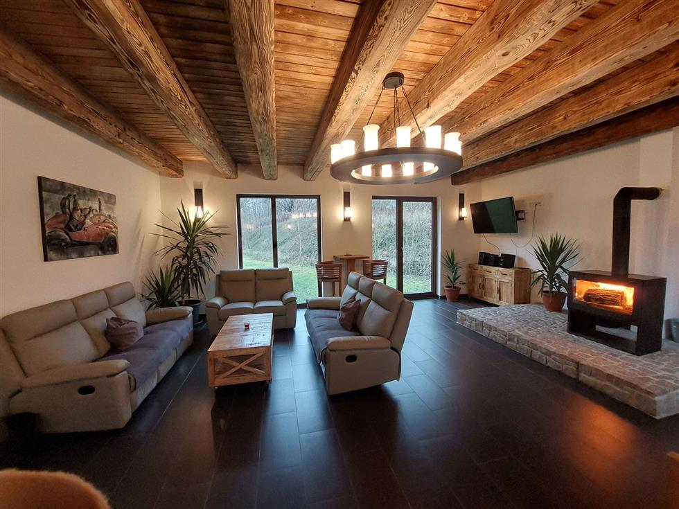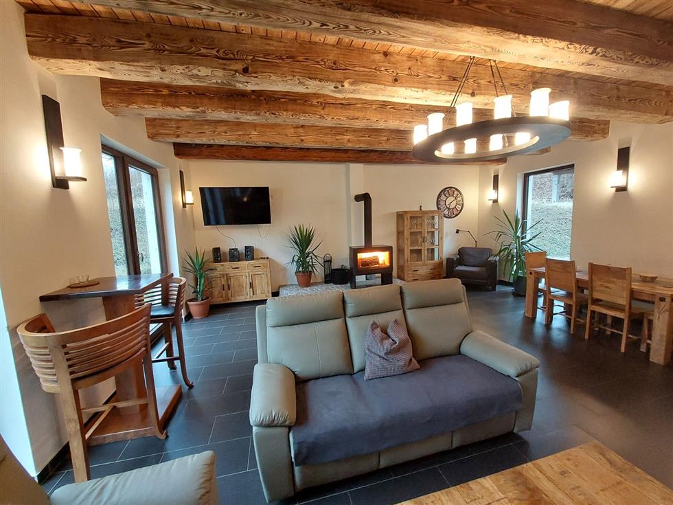 Dům je vytápěn elektrokotlem - přízemí a wellness podlahové vytápění, patro ložnice radiátory. Možnost přitápění krbovými kamny na dřevo v obývacím pokoji. Dřevostavba je vytápěna elektrickými přímotopy.